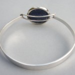 Arne Johansen, lapis lazuli bangle, Denmark, circa 1970, stamped ‘AJ’ for Arne Johansen and ‘925S’ to the edge of the mount and the bangle, and ‘Denmark’ to the bangle, lapis lazuli panel 2.4 cm diameter overall, bangle 5.6 cm internal diameter, width of bangle at widest point 1 cm SOLD