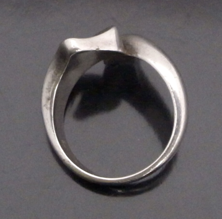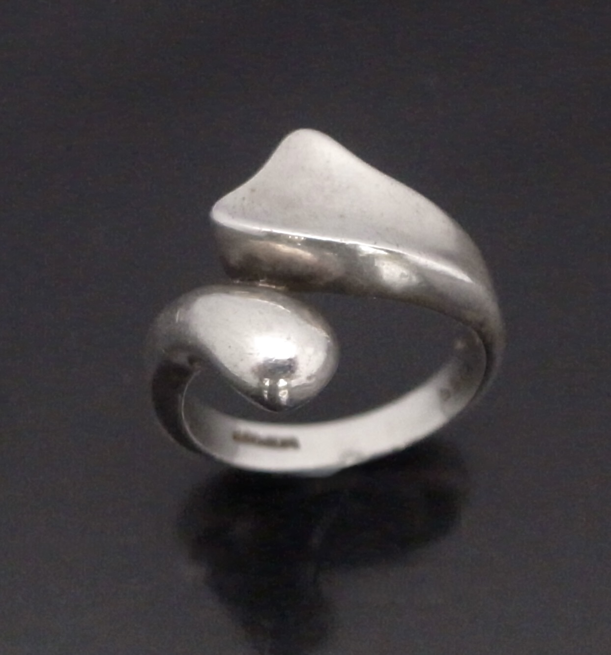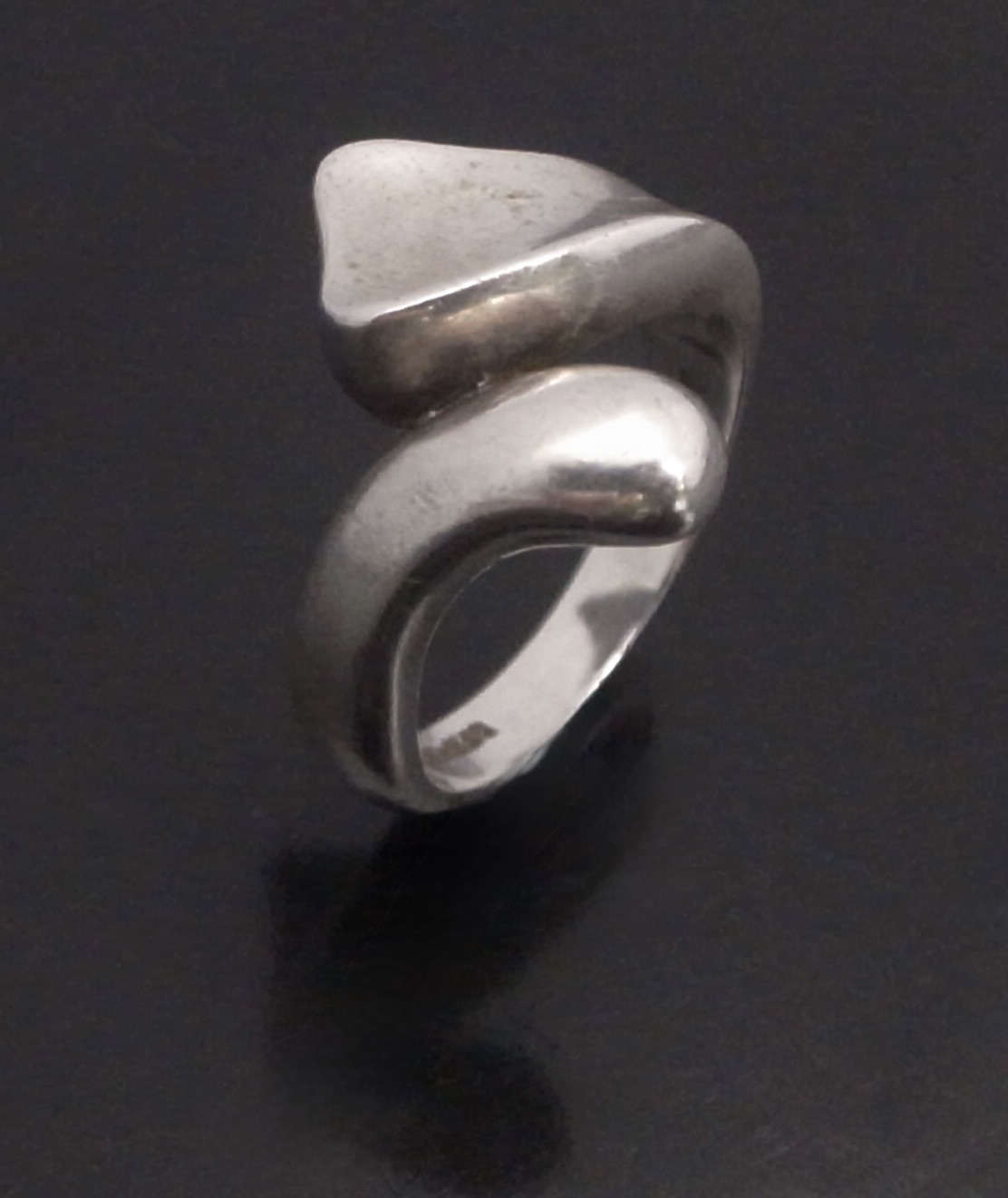 Arne Johansen, a silver ring, Denmark, circa 1978, stamped ‘AJ‘ for Arne Johansen, ‘Denmark‘, and ‘925S’, of cross over design, finger size N (Ref S+2341)