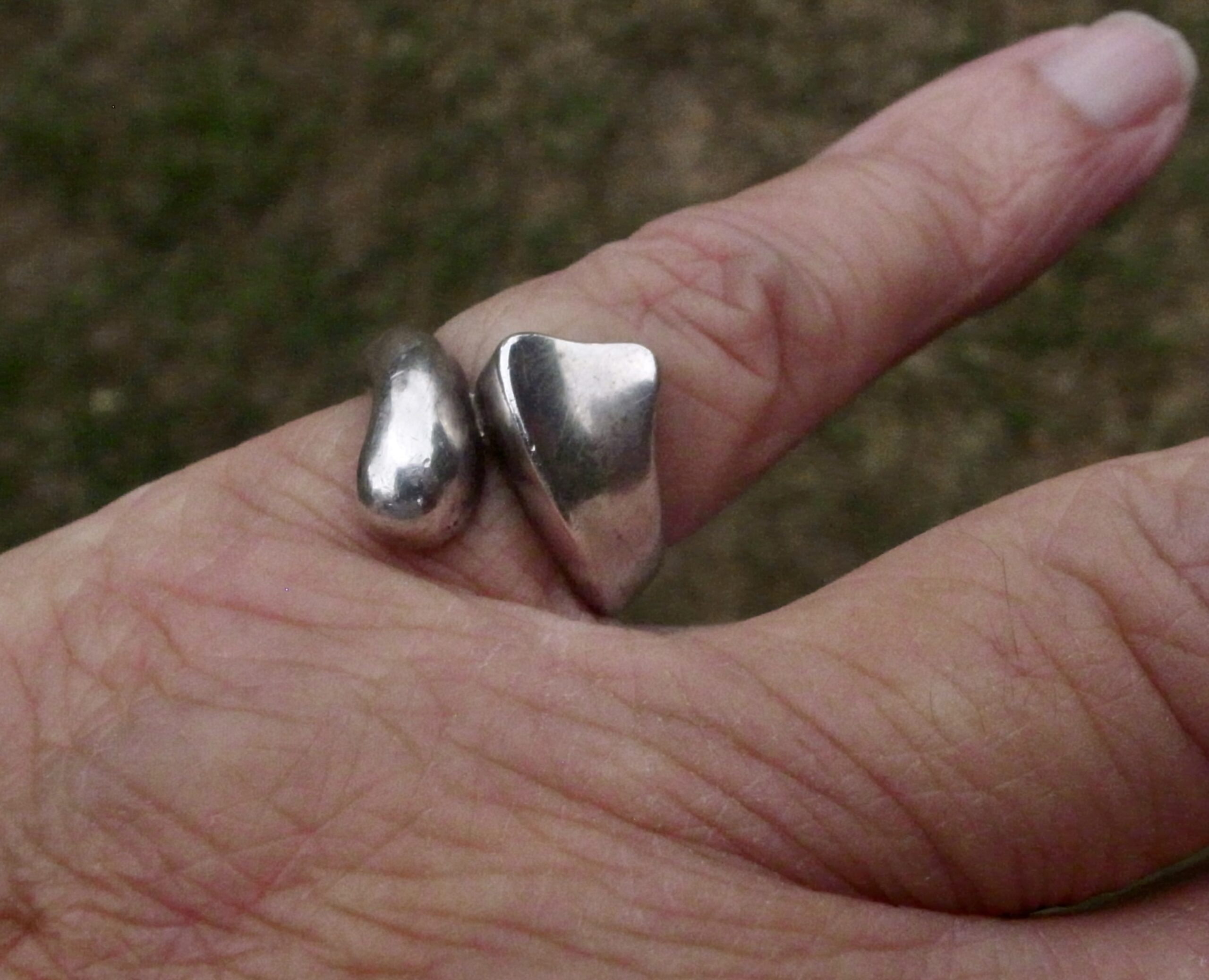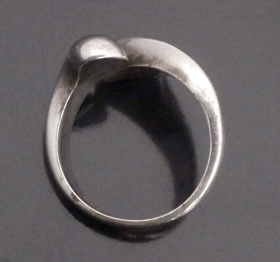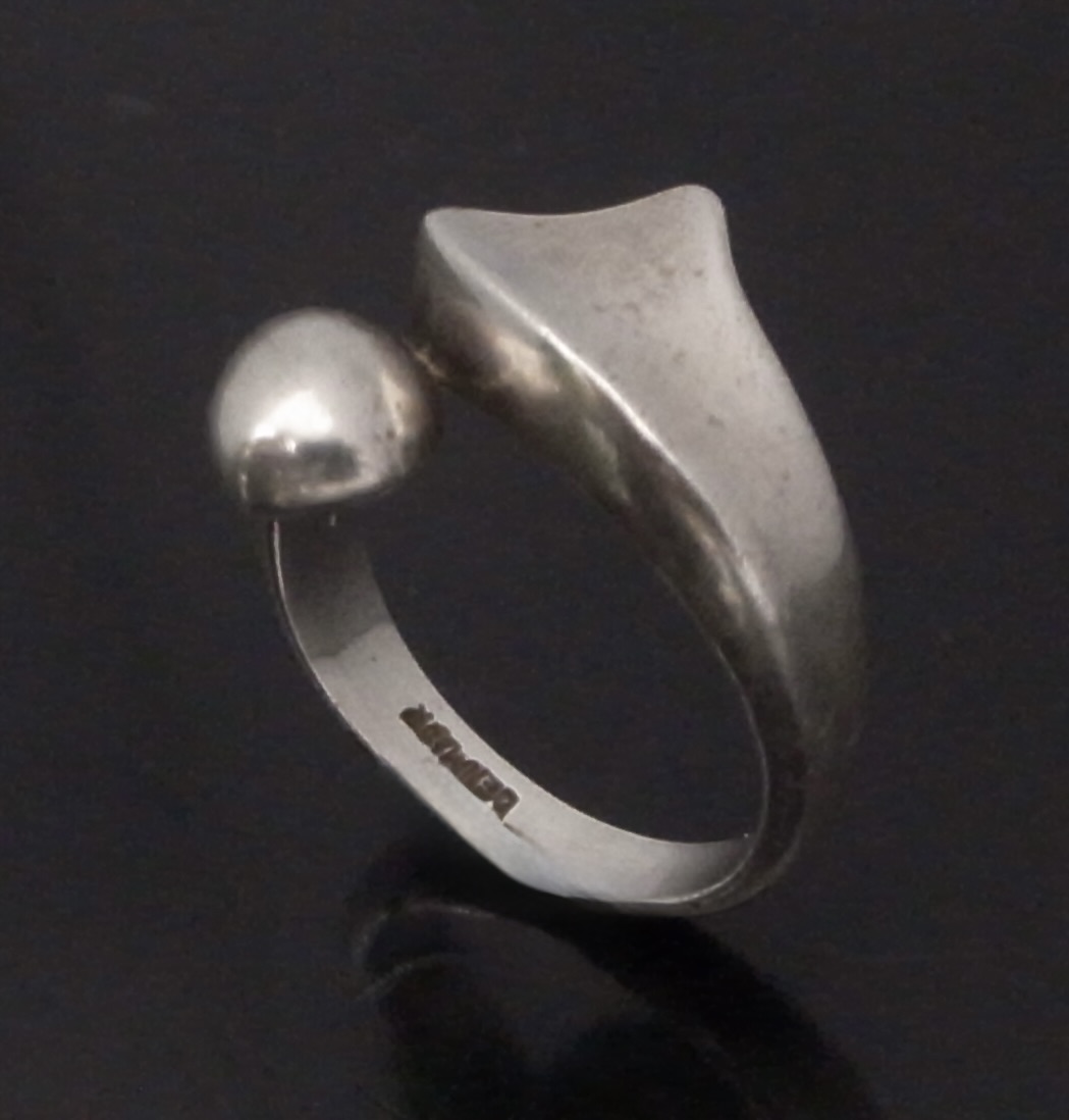 Arne Johansen, a silver ring, Denmark, circa 1978, stamped ‘AJ‘ for Arne Johansen, ‘Denmark‘, and ‘925S’, of cross over design, finger size N (Ref S+2341)