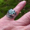 Caithness Jewellery, a millefiori glass set silver ring, London 1970, stamped ‘CJ‘ for Caithness Jewellery, the head with a millefiori cabochon of approximately 13 mm diameter, finger size K (Ref S+947) SOLD