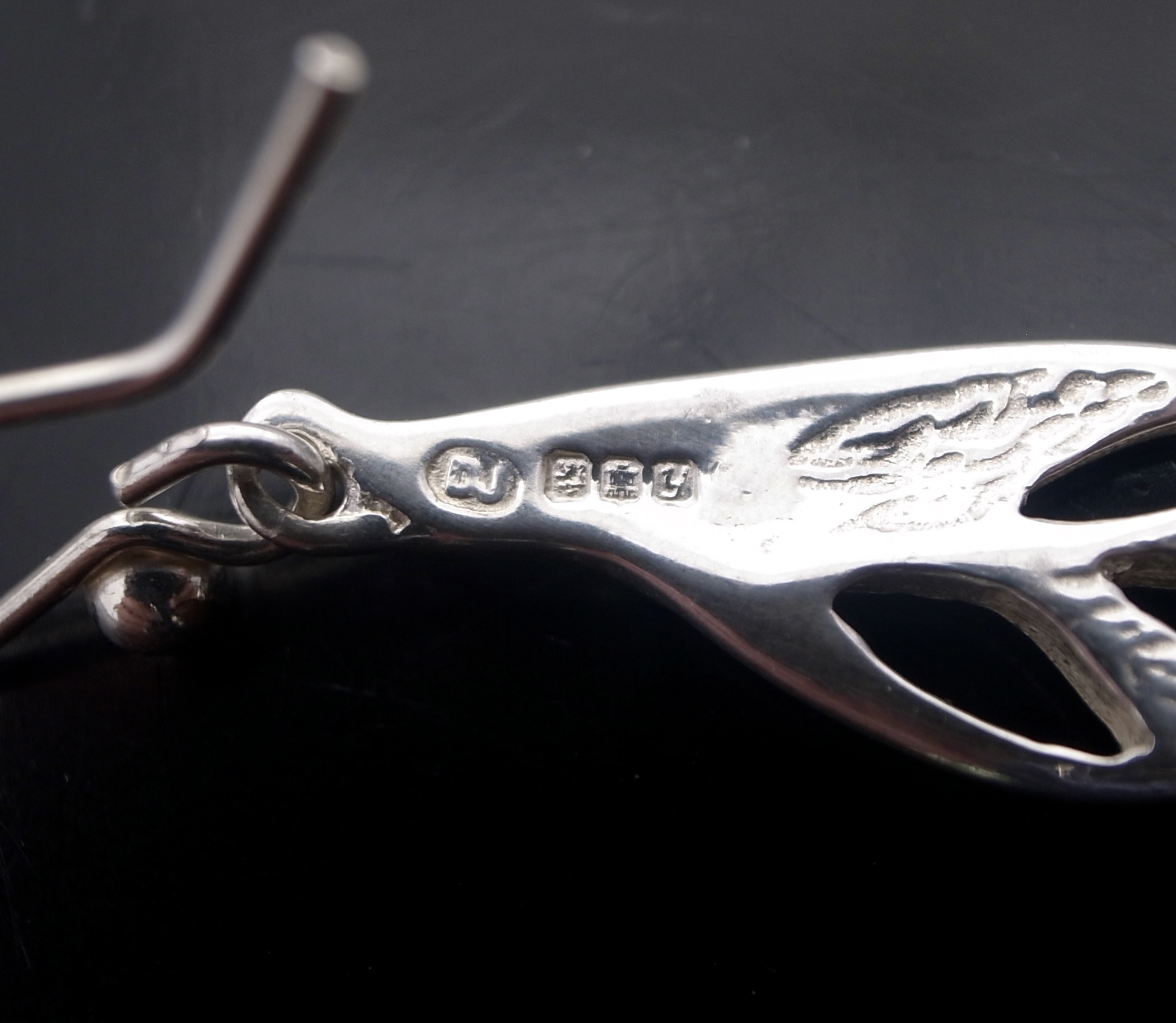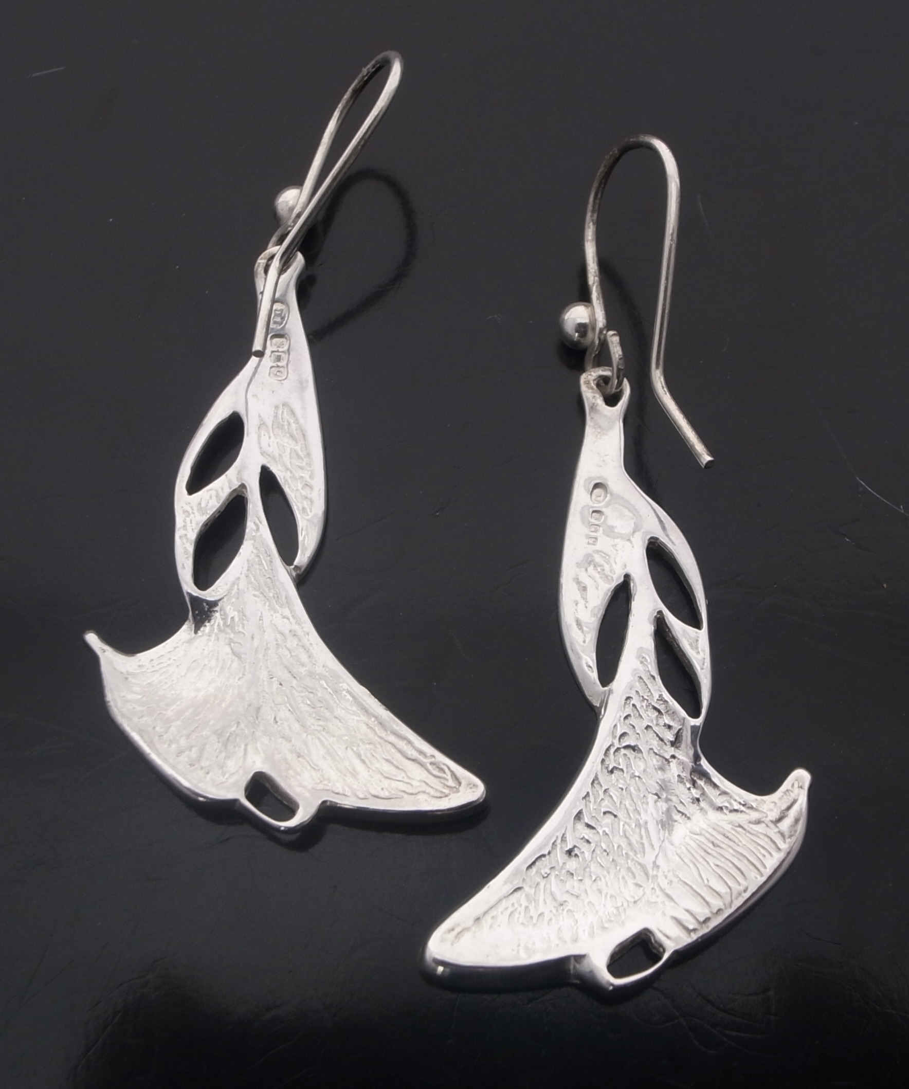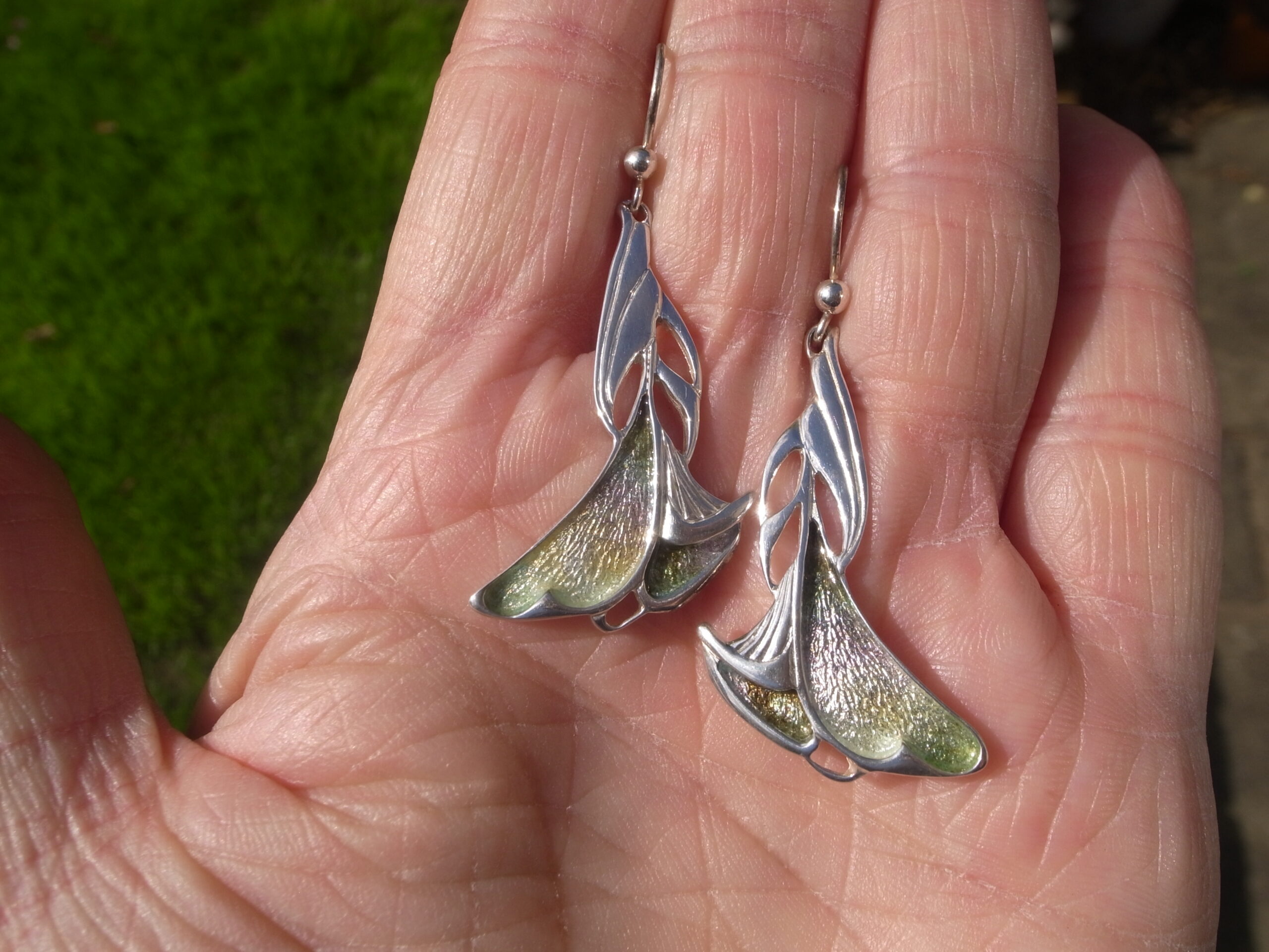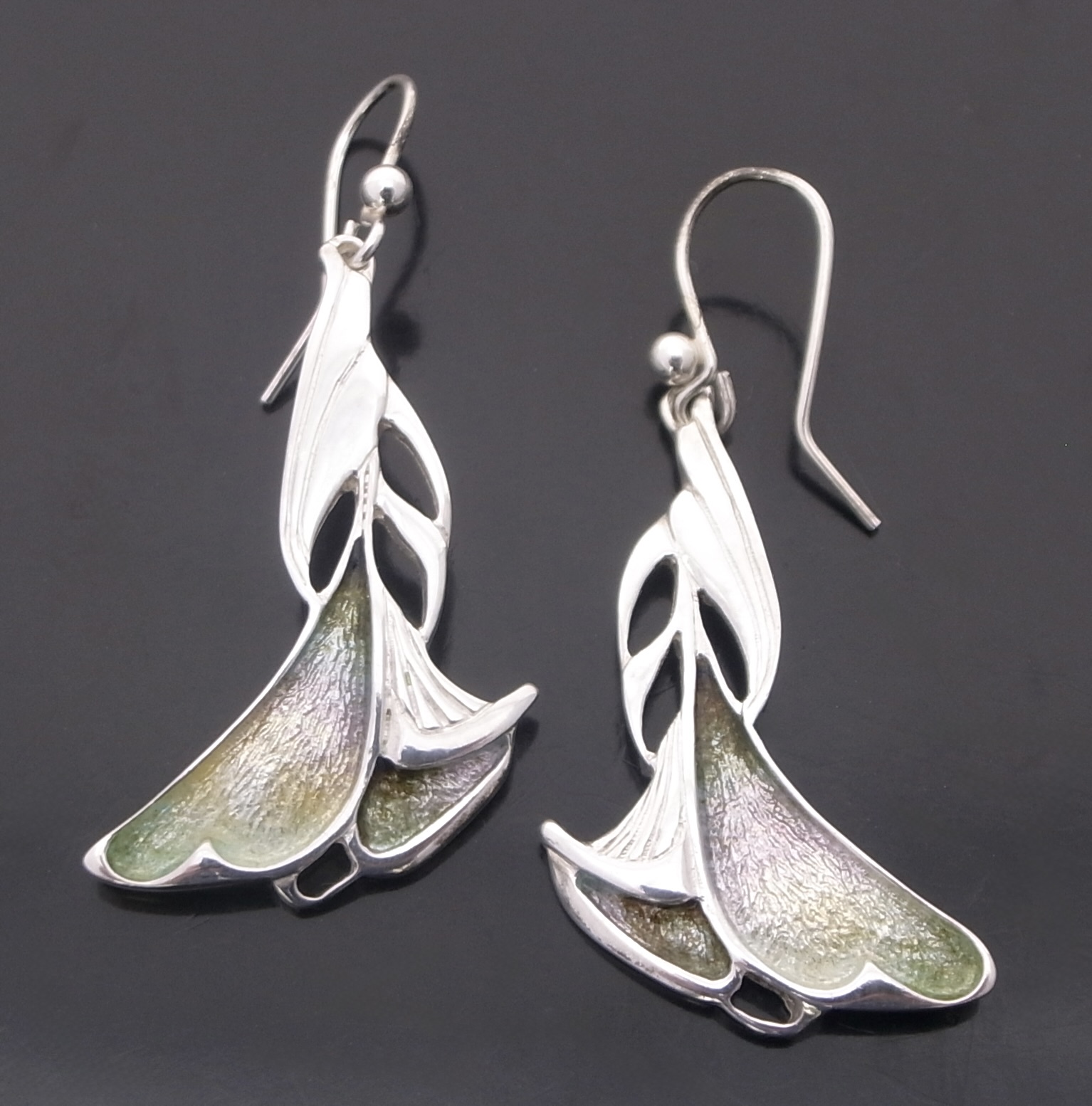 Dust Jewellery, a pair of enamel and silver drop earrings, Edinburgh 1998, stamped ‘DJ‘ for Dust Jewellery, the earrings approximately 3.5 cm long excluding the hook wires (Ref S+2393) SOLD