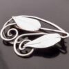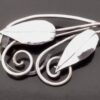Gladys and Charles Mumford, an Arts and Crafts silver brooch, Falmouth, Cornwall, circa 1960, indistinct stamp probably marked ‘Silver’, with two leaves laid on shaped curled wire, 4.2 cm long (Ref S+698) SOLD