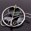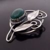 Gladys and Charles Mumford, an Arts and Crafts green agate set silver brooch, Falmouth, circa 1960, faintly stamped ‘Silver’ in two positions, the oval agate measures approximately 18 mm by 13 mm, the brooch 4.7 cm at longest, later added roller catch (Ref S+757) SOLD