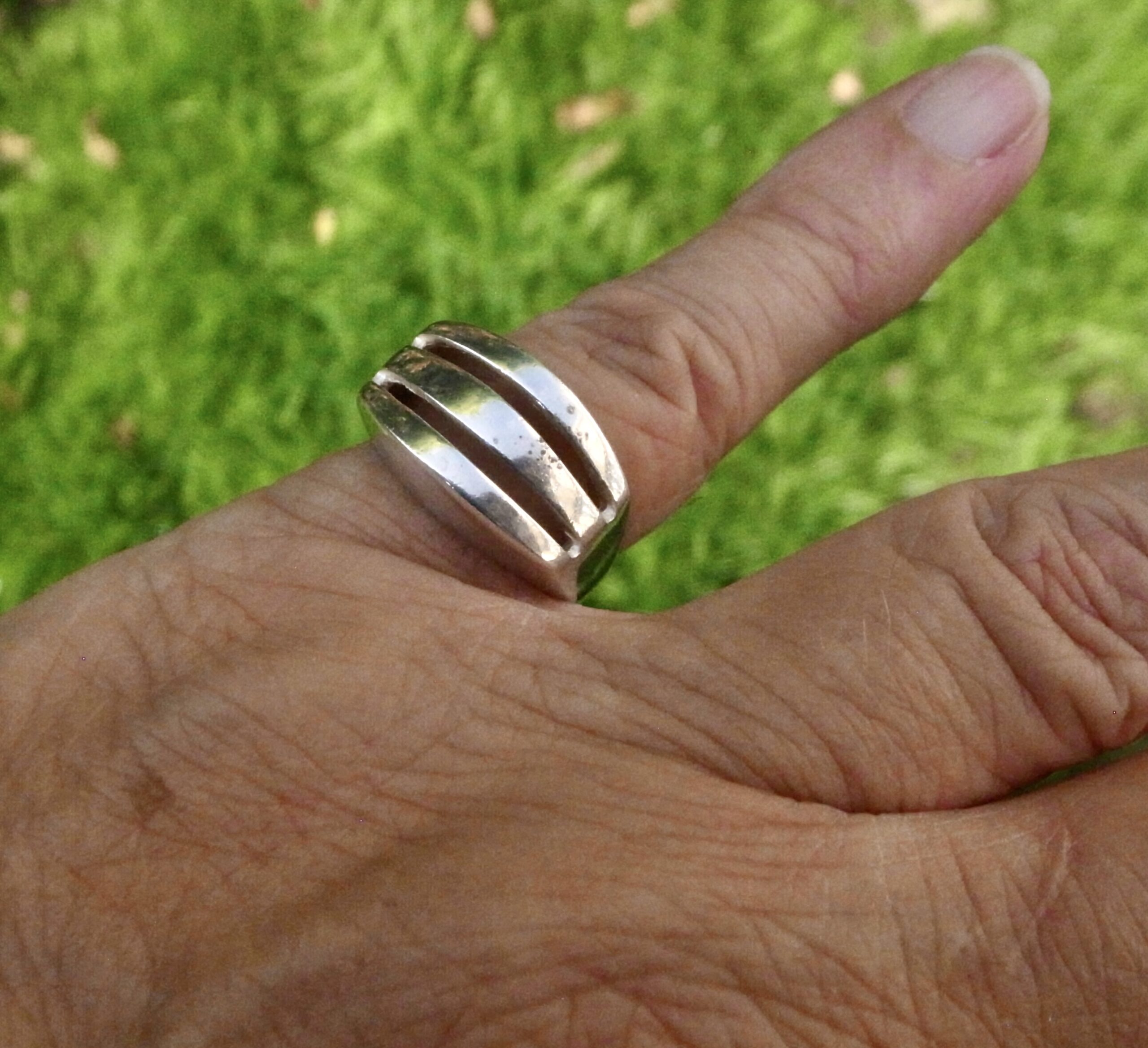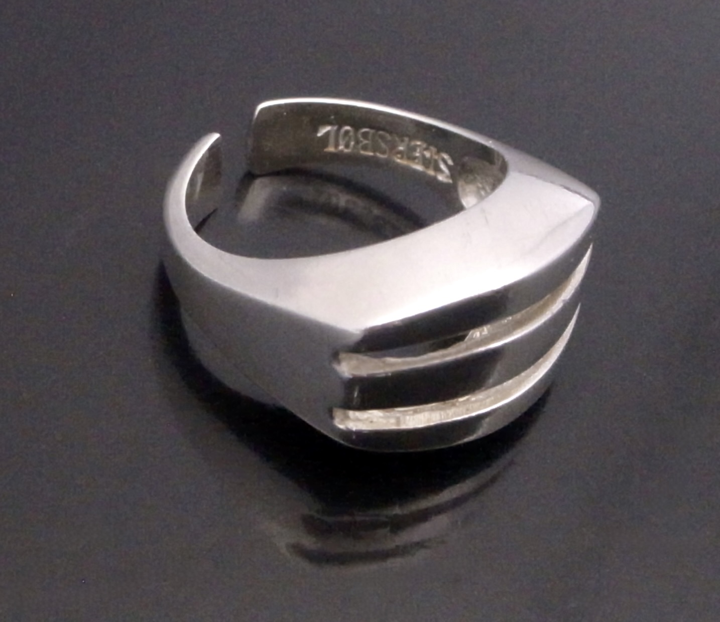 Hermann Siersbol, a silver ring, Denmark, circa 1970, stamped ‘Siersbol‘ for Hermann Siersbol, and ‘925S’, with an adjustable open split shank, currently size M (Ref S+2386)