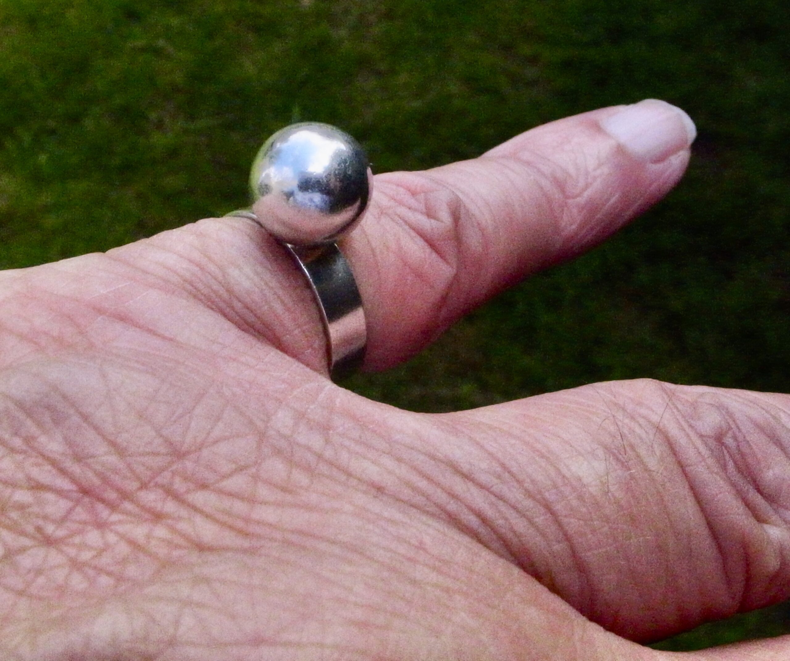 Hermann Siersbol, a silver bead ring, Denmark, circa 1970, stamped ‘HS‘ for Hermann Siersbol and ‘925S’, the bead approximately 10 mm in diameter, on a shank approximately 3.5 mm wide and finger size M leading edge (Ref S+730) SOLD