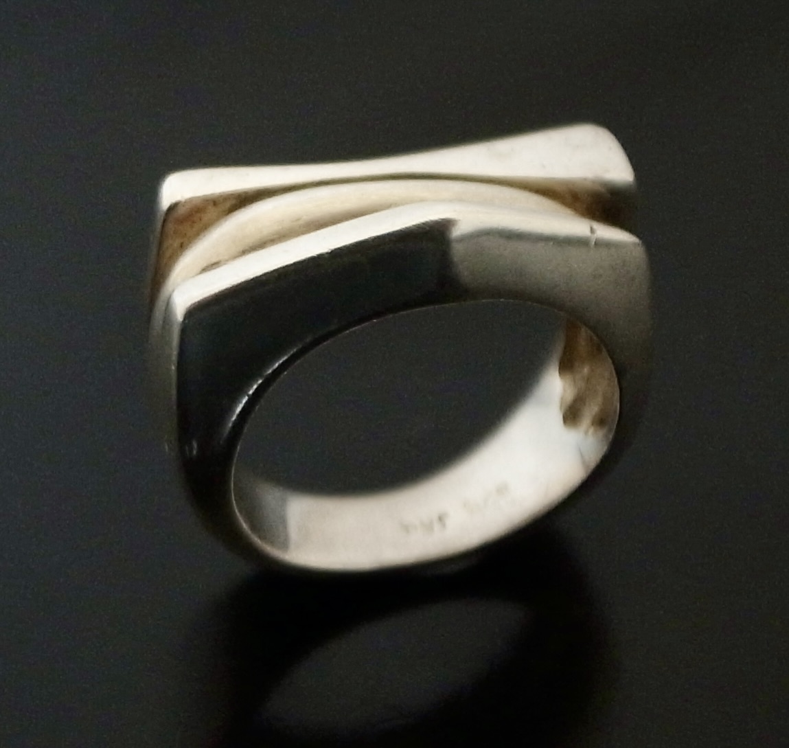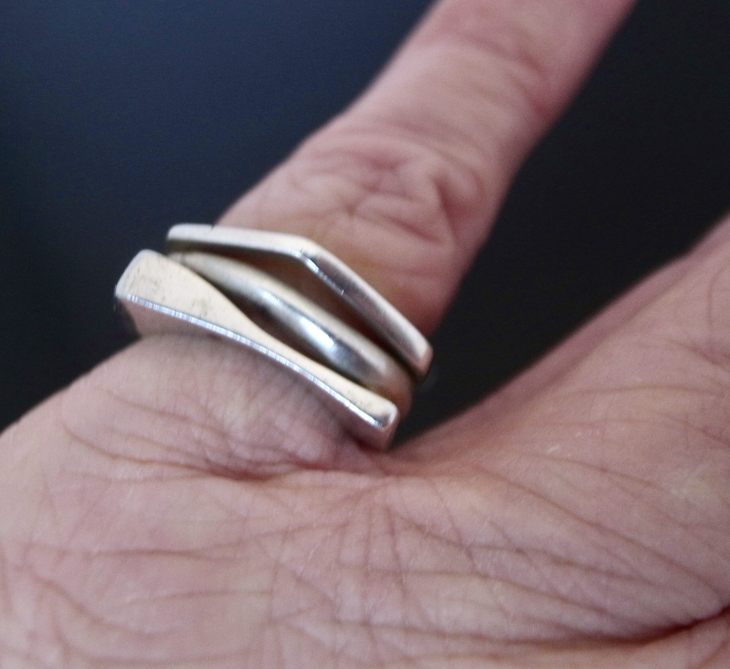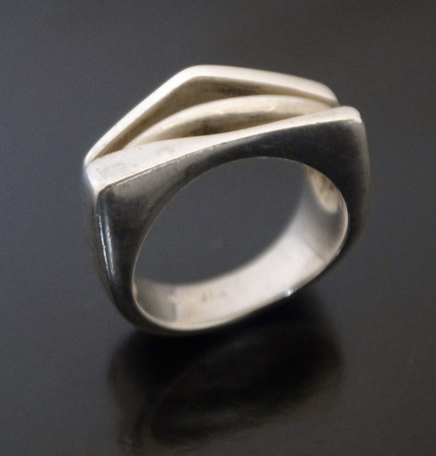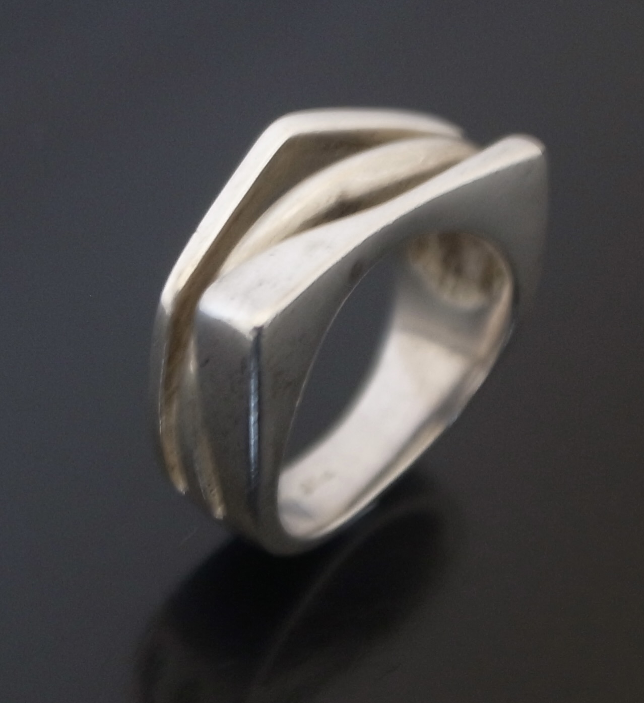 Jens Aagaard, a silver ring, Denmark, circa 1975, stamped ‘JAa‘ for Jens Aagaard and ‘925’, of triple ring design, finger size L (Ref S+2471)
