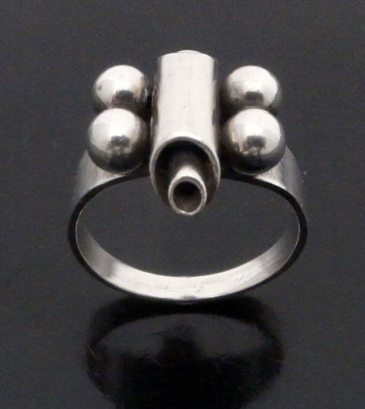 Kurt C. H. Dehli (possibly), an 830 standard silver ring, Scandinavian, Denmark(?), circa 1968, stamped ‘KD’ and ‘830S’, finger size R, inner diameter 19 mm (Ref S+2278)