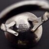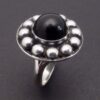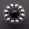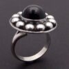 Niels Erik From, a black onyx set silver ring, Denmark, circa 1970, stamped ‘N. E. From‘, ‘Denmark‘, ‘Sterling’ and ‘925S’, the circular head of approximately 20 mm diameter, to a split shouldered shank, the cabochon approximately 11 mm diameter, enclosed by twelve beads, finger size O 1/2, stamped to the outside of the shank with Dutch import marks (Ref S+1045)