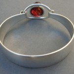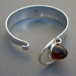 Niels Erik From, a silver amber bangle, Denmark, circa 1975, stamped ‘Sterling’, ‘Denmark‘, ‘N.E.From‘ for Niels Erik From, and ‘925S’, the steep cabochon approximately 1.2 cm diameter at base, 1 cm high, the bangle 1.5 cm at widest point and internal diameter of 6 cm SOLD