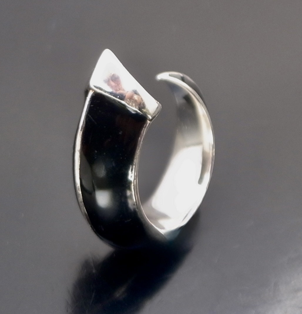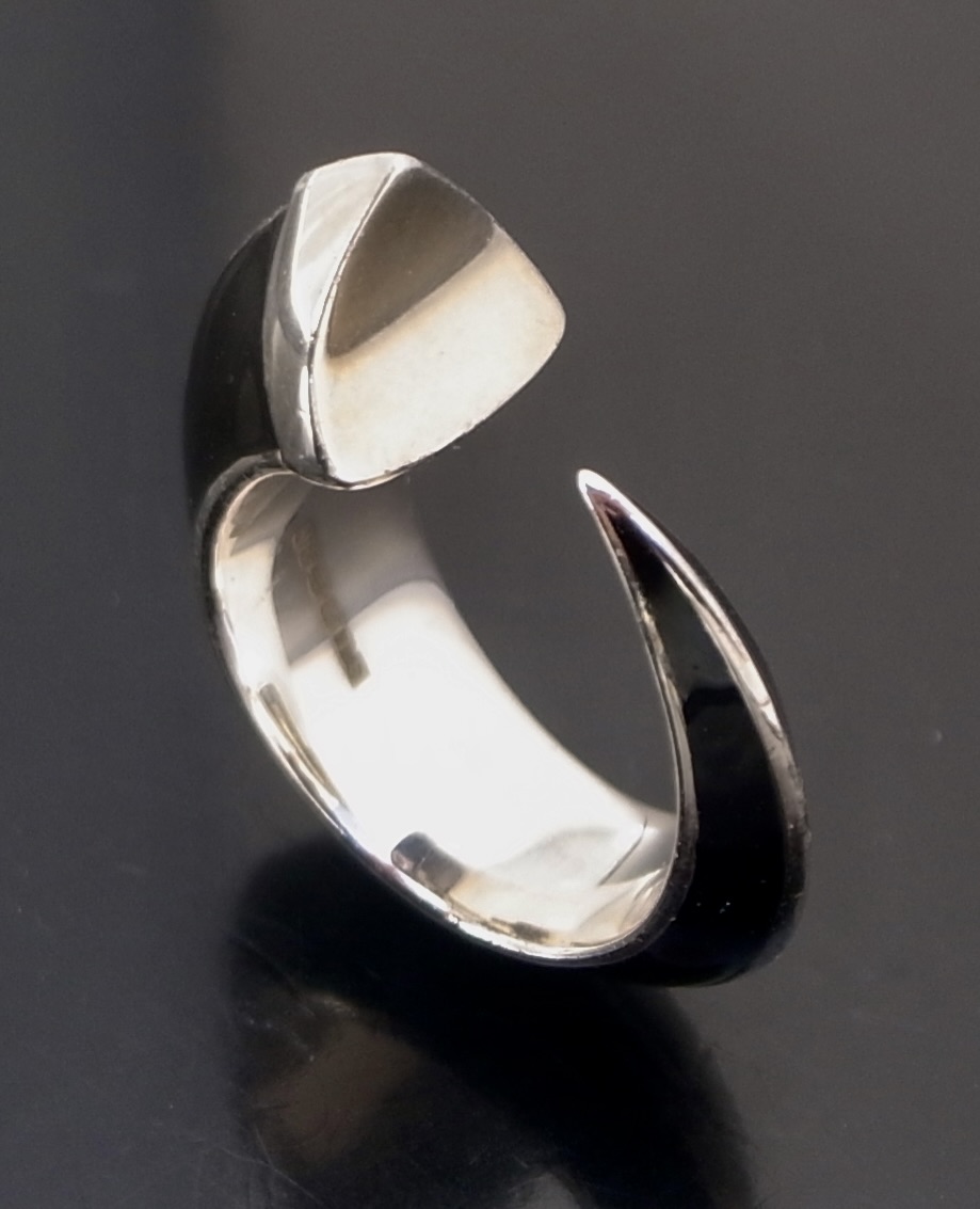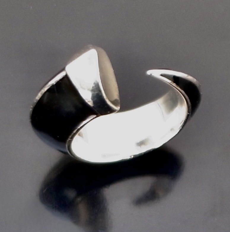Shaun Leane, a ‘Jet’ ceramic and silver ‘Sabre Solis‘ ‘Tusk‘ ring, London 2007 hallmark, makers mark of ‘SL‘ for Shaun Leane, finger size J, the inner diameter 15.39 mm (Ref S+2430)