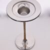 Stuart Devlin for Viners, a stainless steel and part gilded candlestick, Sheffield, 1970s, the plastic covered underside to the base embossed ‘Viners‘, ‘Stainless Steel’, ‘Designed by’, ‘Stuart Devlin‘, and ‘Sheffield England’, approximately 15 cm high, diameter of candle sconce 7.6 cm, diameter of spreading foot 6.5 cm (Ref S+440) SOLD