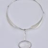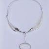 Torun Bulow Hube for George Jensen, a rare silver rutilated quartz pendant on collar, Denmark, 1975, #242, stamped ‘Georg Jensen‘ in a doted oval, ‘Denmark‘, ‘Torun‘, ‘242’ and ‘925S’, with London import marks for 1975, sponsors mark ‘GJ Ld‘ for Georg Jensen, import mark to the collar and the pendant, pendant approximately 7 cm long, rutilated quartz 4.3 cm by 2.8 cm, inner diameter of collar approximately 13.3 cm SOLD