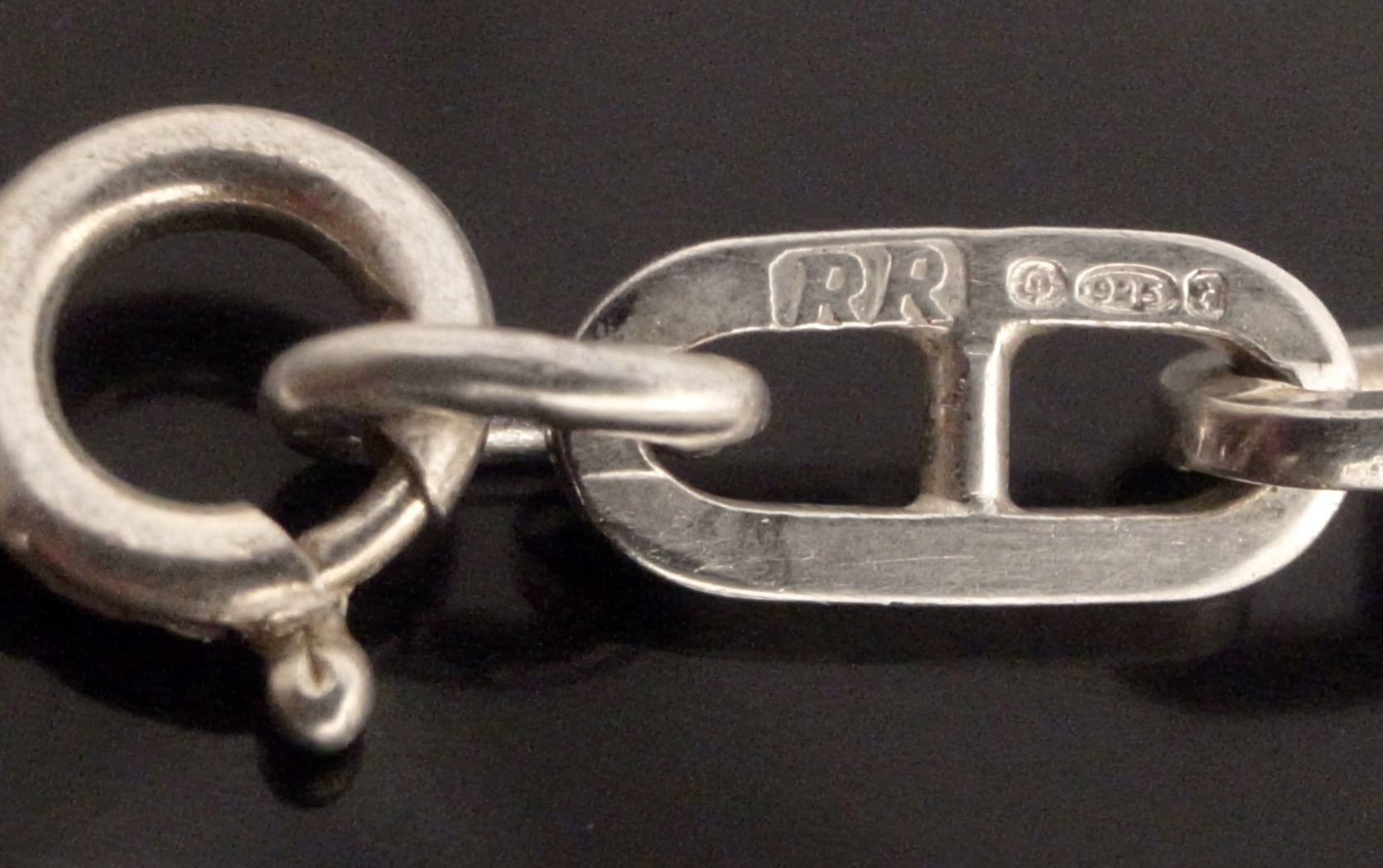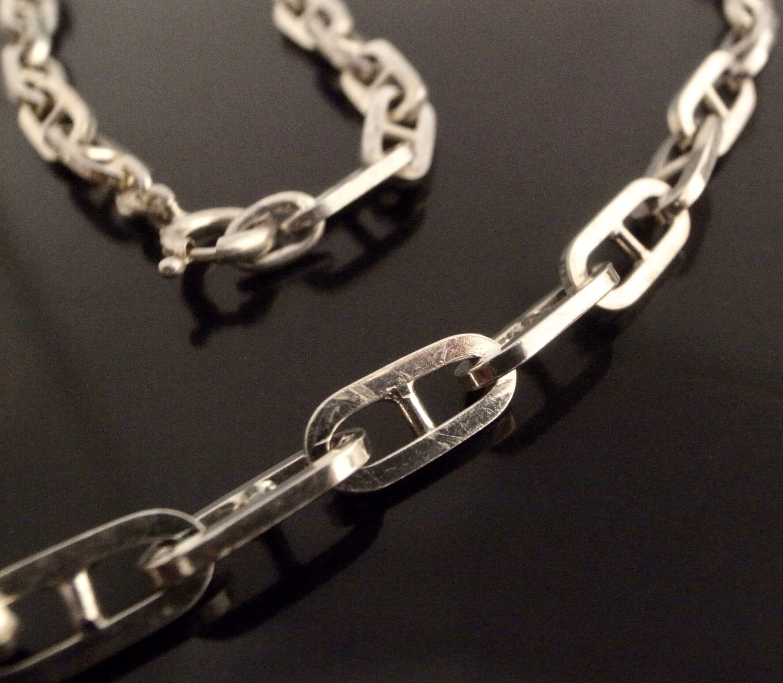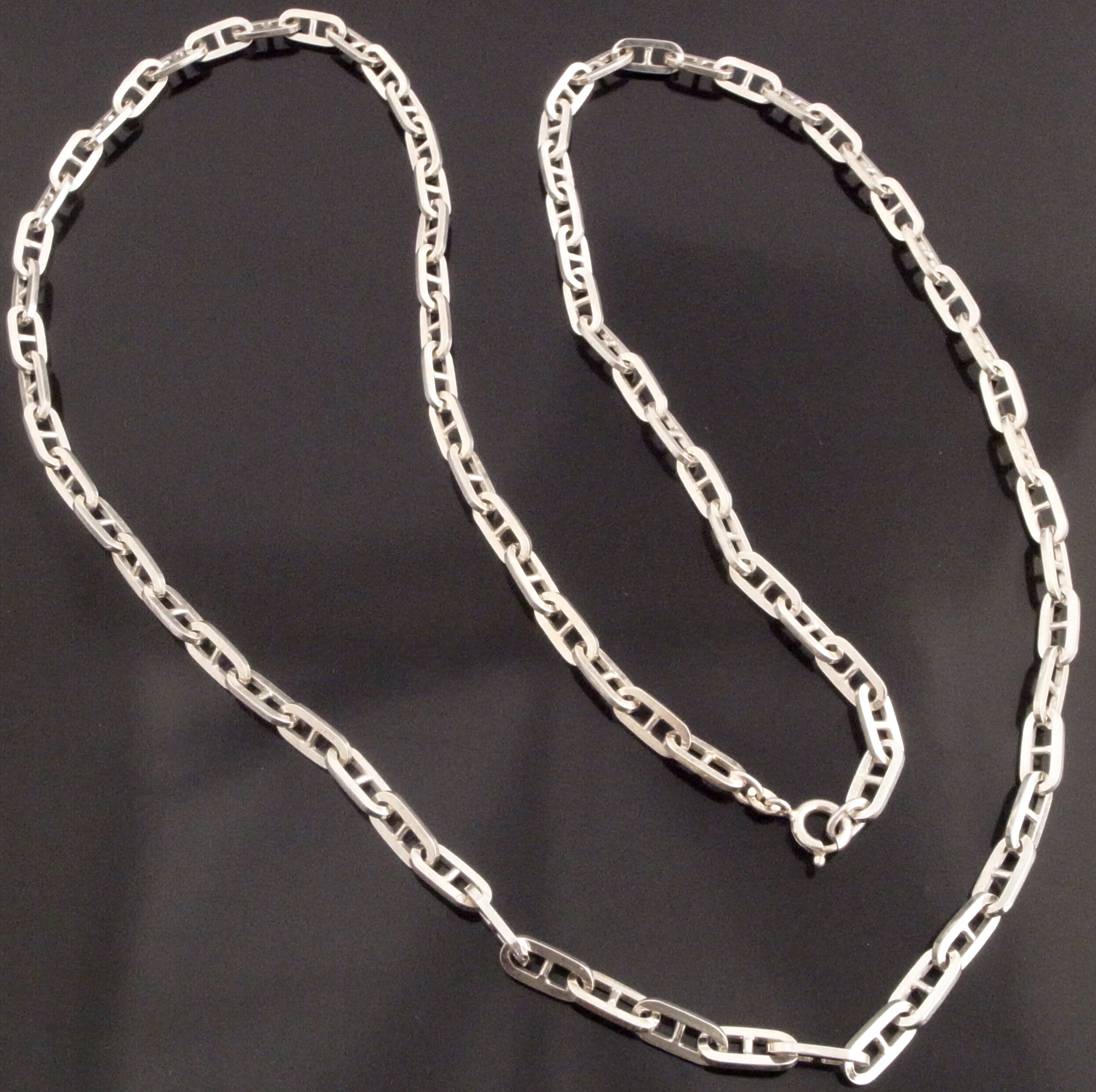 Unknown maker, an anchor link silver long chain, 1974 London import marks, ‘RR‘ sponsors mark, approximately 80 cm long, 40 grams gross (Ref S+2158) SOLD