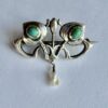 W.H.Haseler, to a design for Liberty & Co, an Art Nouveau turquoise set silver brooch, Birmingham, circa 1905, stamped ‘W H H‘ for William Hair Haseler and ‘Silver’, with a freshwater pearl drop, approximately 3.2 cm across (Ref S+111) SOLD